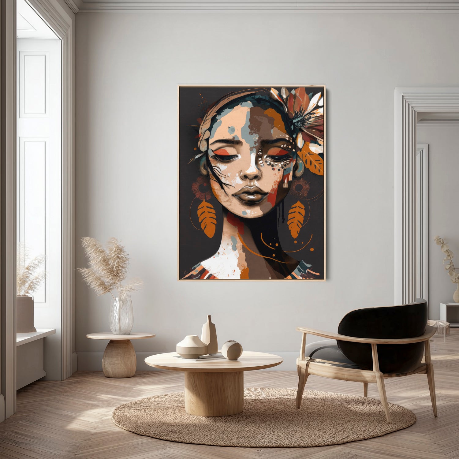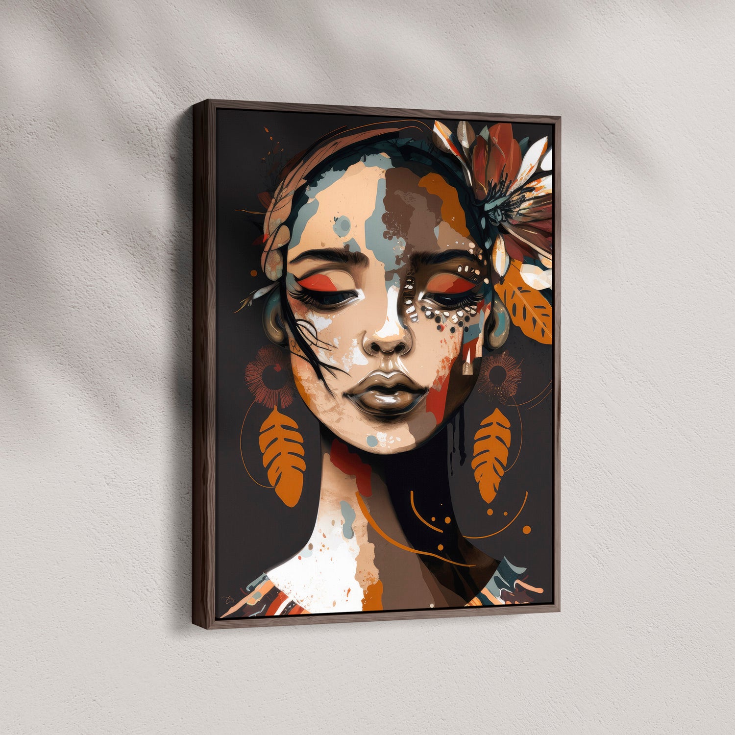 Our stretched canvas is nestled inside a premium hardwood float frame (matte black, white, brown, or natural). A slim front profile and elegant “floating” gap create the illusion that your artwork is levitating inside the frame, adding polish and presence in one ready-to-hang package. This option arrives with pre-installed hardware and rubber bumpers, so all you need is a hook on the wall and a moment to step back and admire.