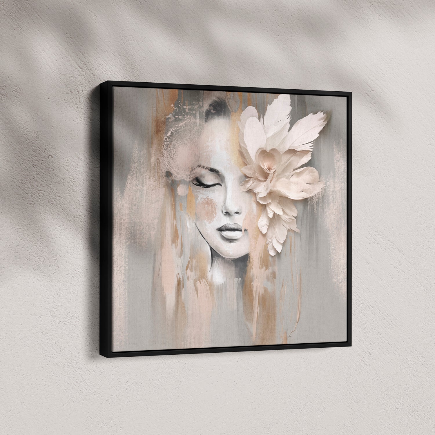Our stretched canvas is nestled inside a premium hardwood float frame (matte black, white, brown, or natural). A slim front profile and elegant “floating” gap create the illusion that your artwork is levitating inside the frame, adding polish and presence in one ready-to-hang package. This option arrives with pre-installed hardware and rubber bumpers, so all you need is a hook on the wall and a moment to step back and admire.