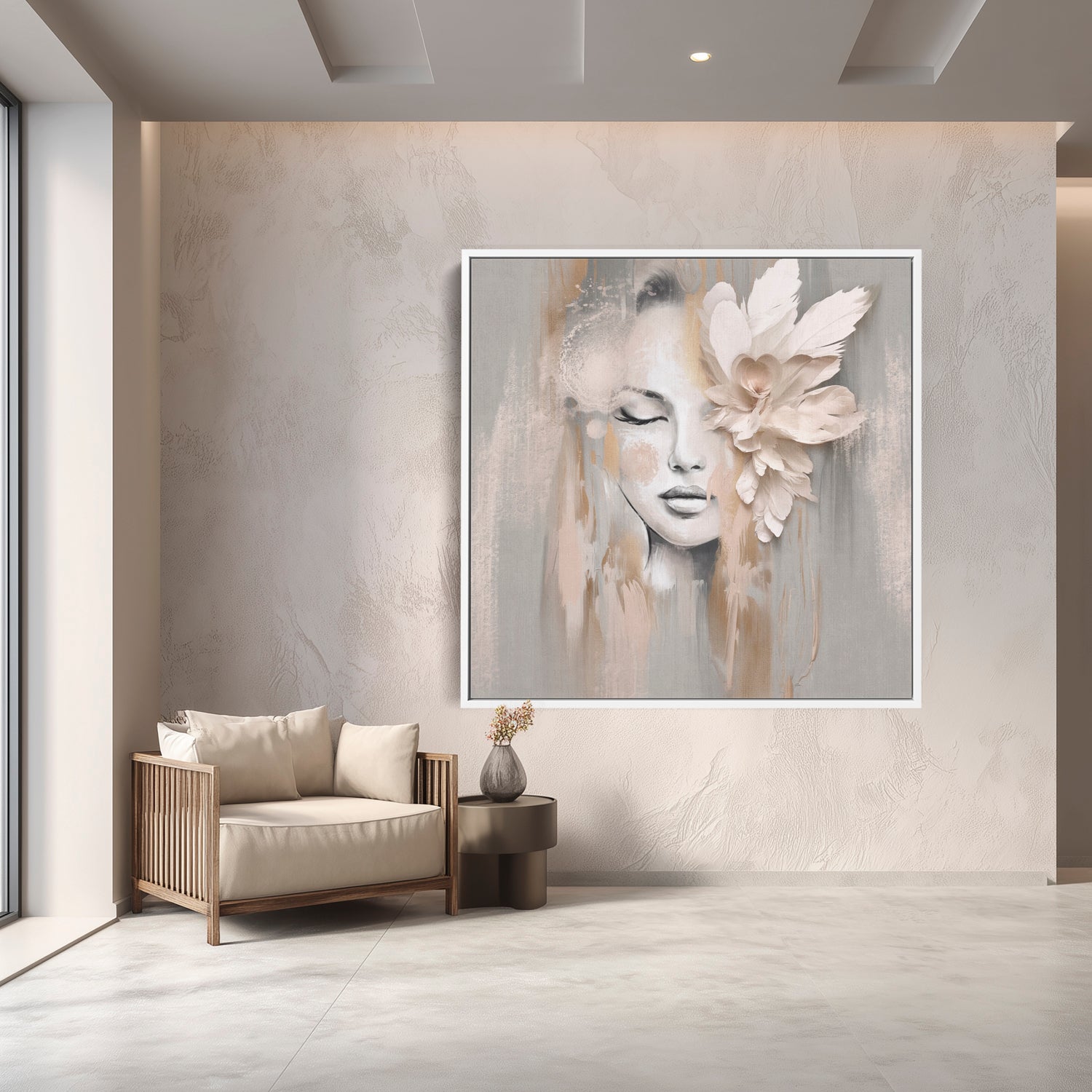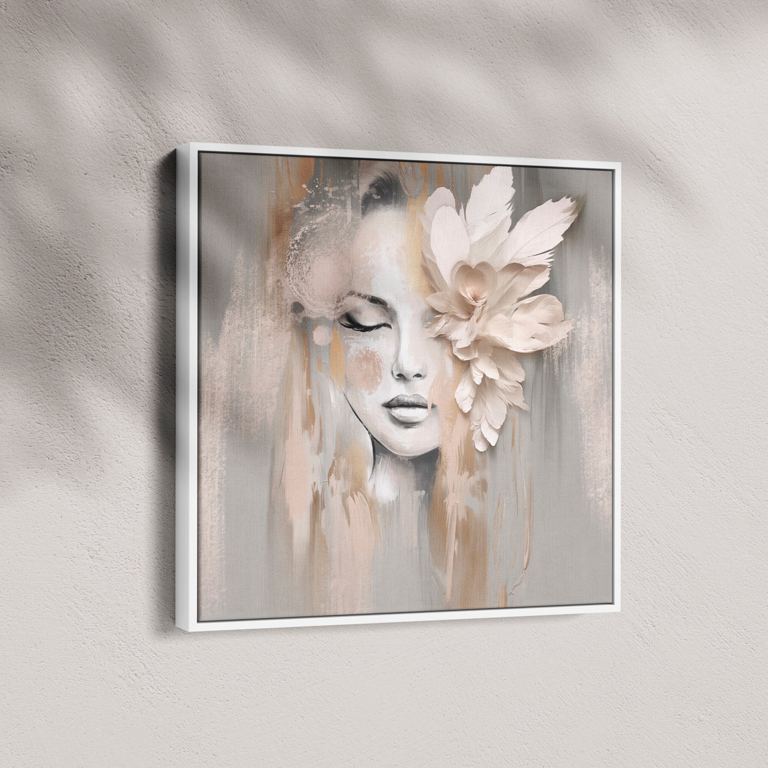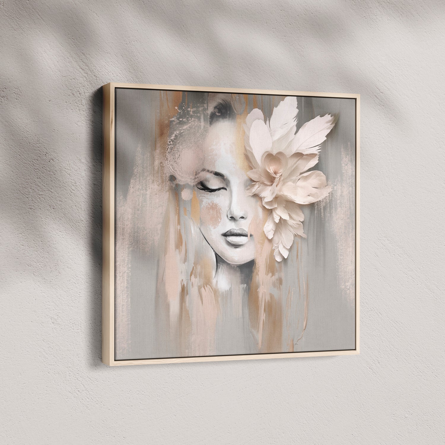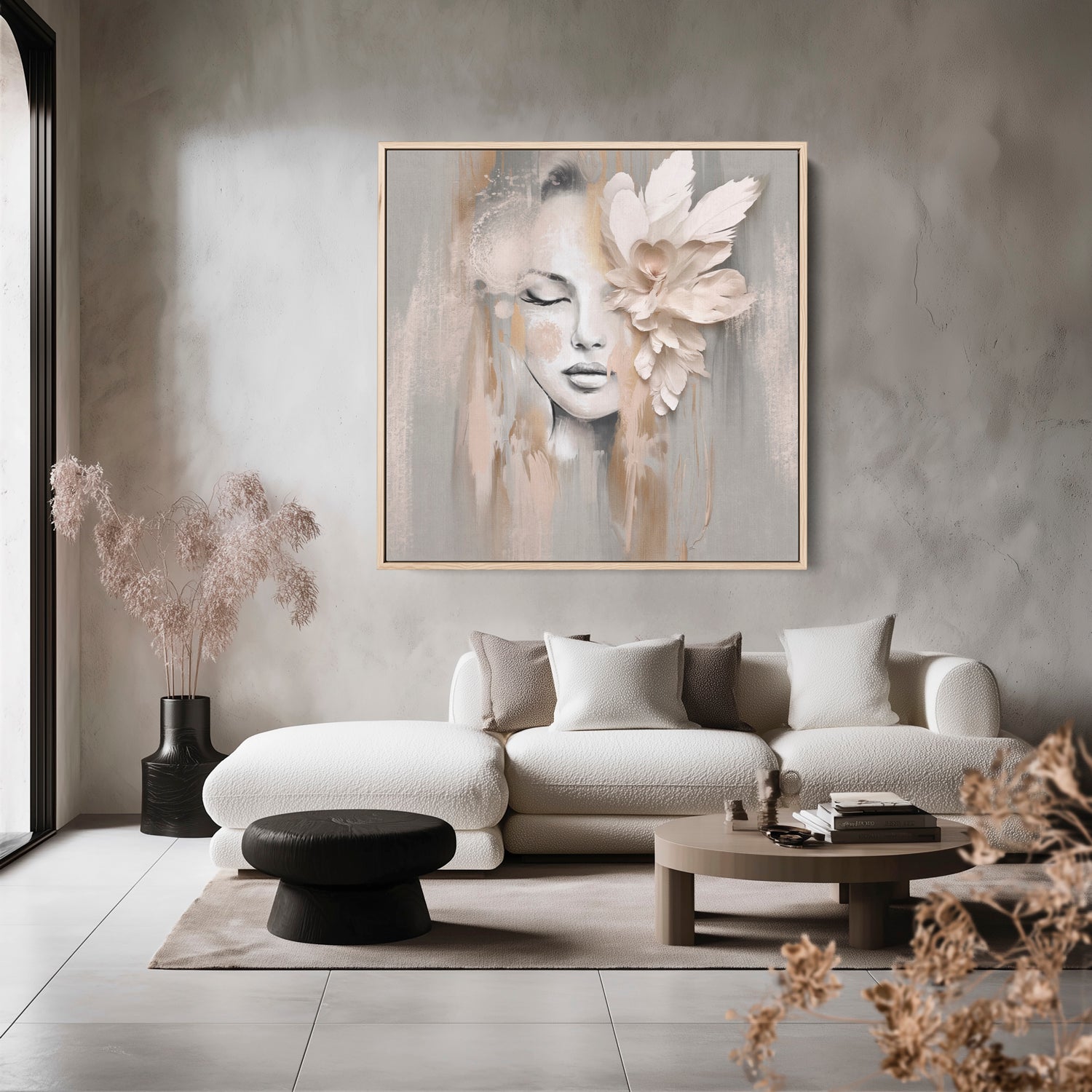 She drifts between daydream and stillness, where whispers of blush and bone melt into soft petal folds. Beige Petal holds space for quiet reflection..delicate, composed, and effortlessly graceful. A portrait that feels like a pause in time.