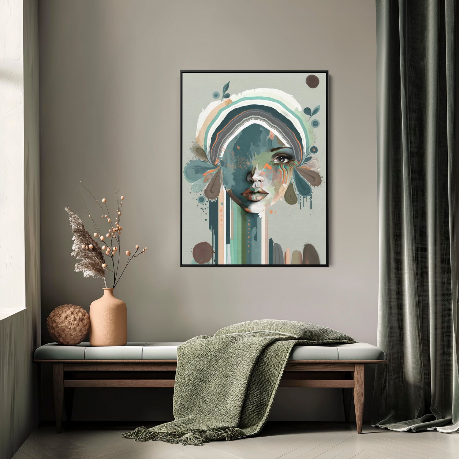 Blaire is a study in contrast.. fluid yet structured, bold yet introspective. Her gaze is direct, layered beneath waves of muted teal, olive, and warm earth tones that echo nature’s quiet strength.