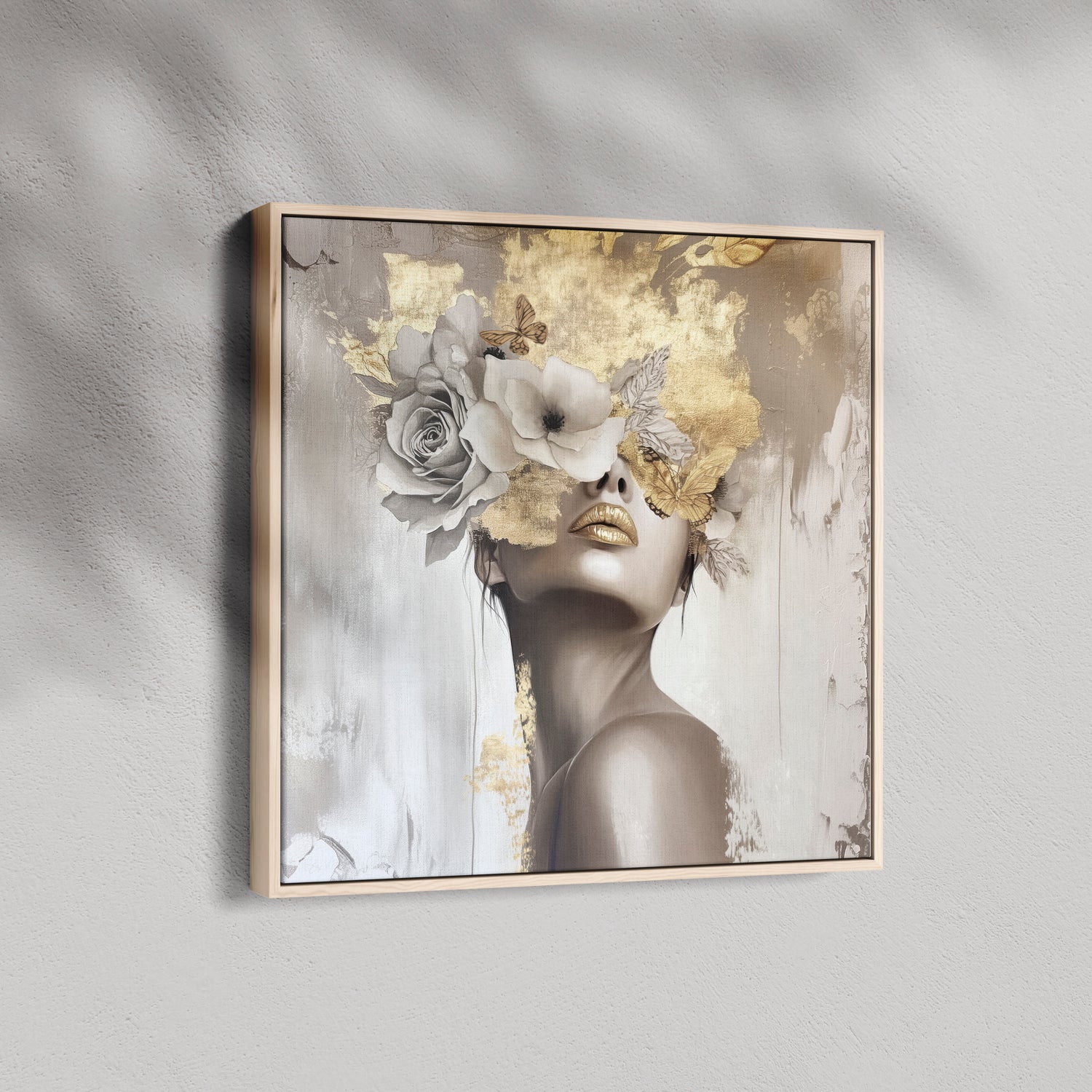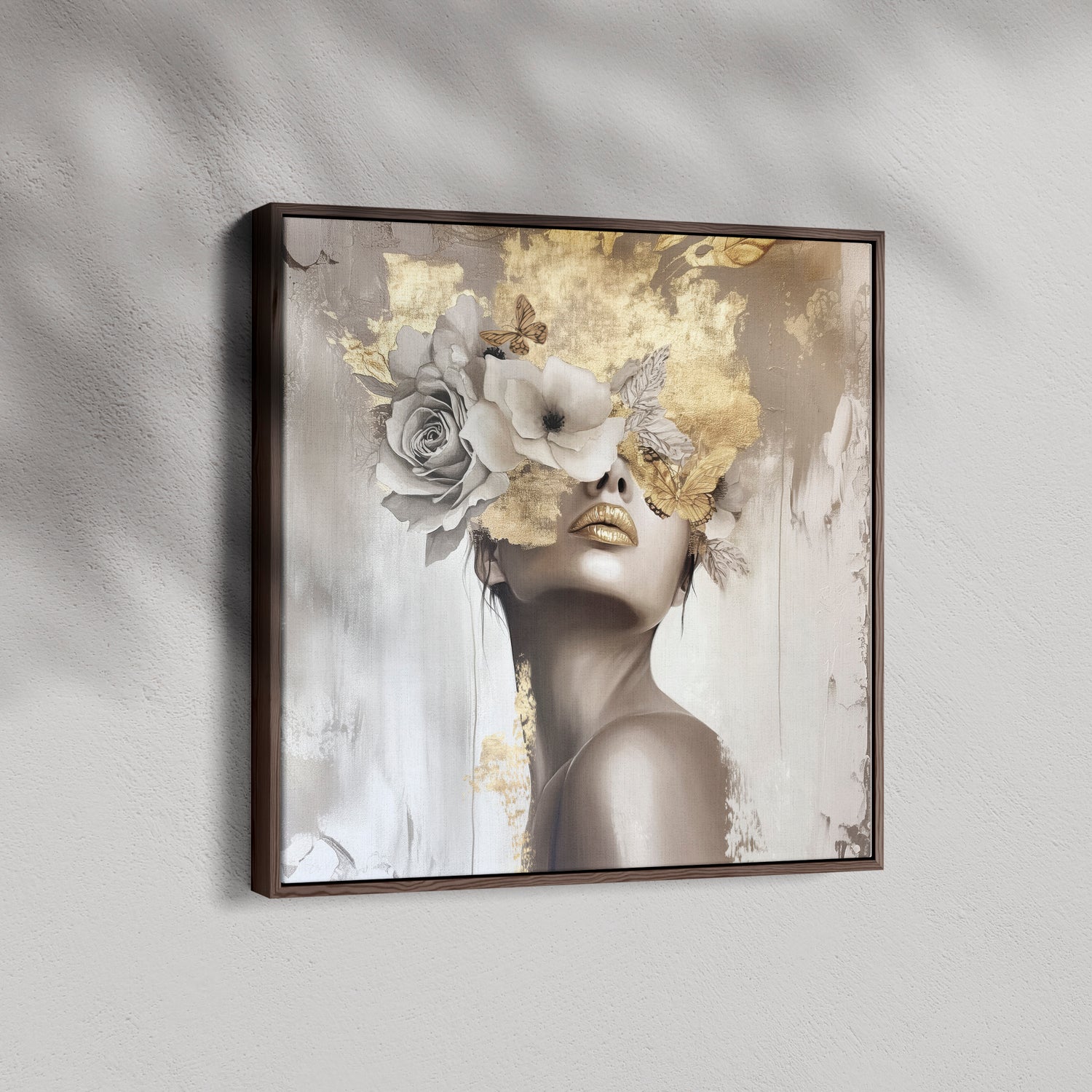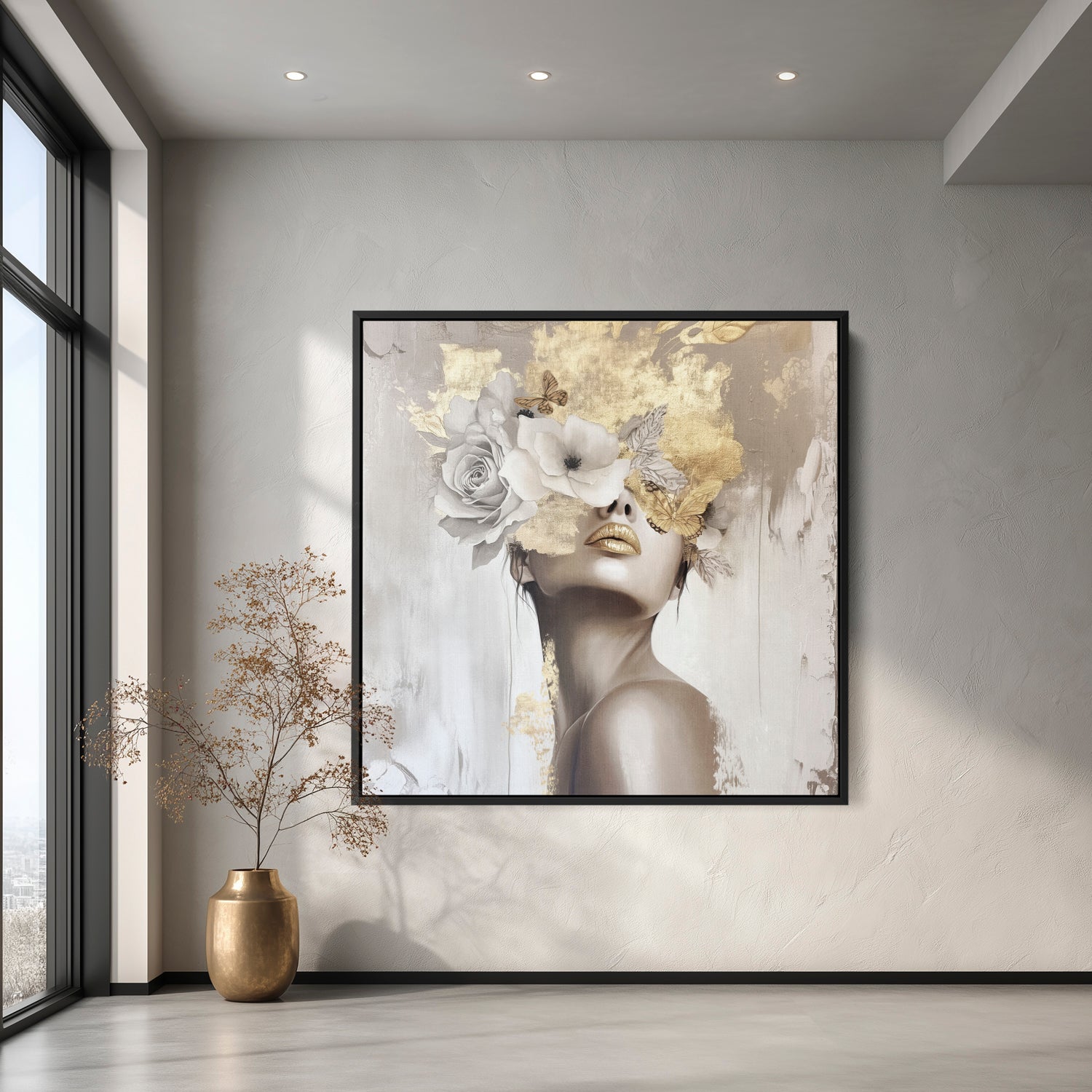 A portrait of golden stillness, Butterfluer blends softness and opulence in a single, striking glance. Gilded butterflies and florals crown her gaze, while gold-brushed lips elevate the elegance with quiet confidence.