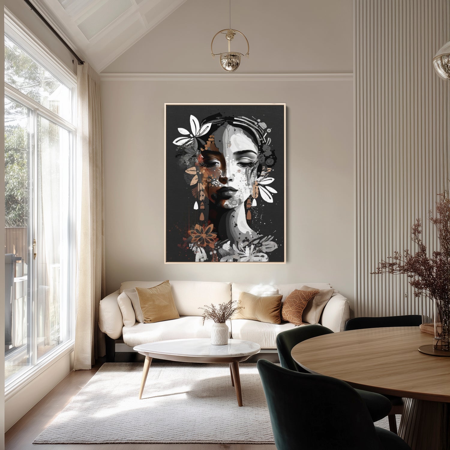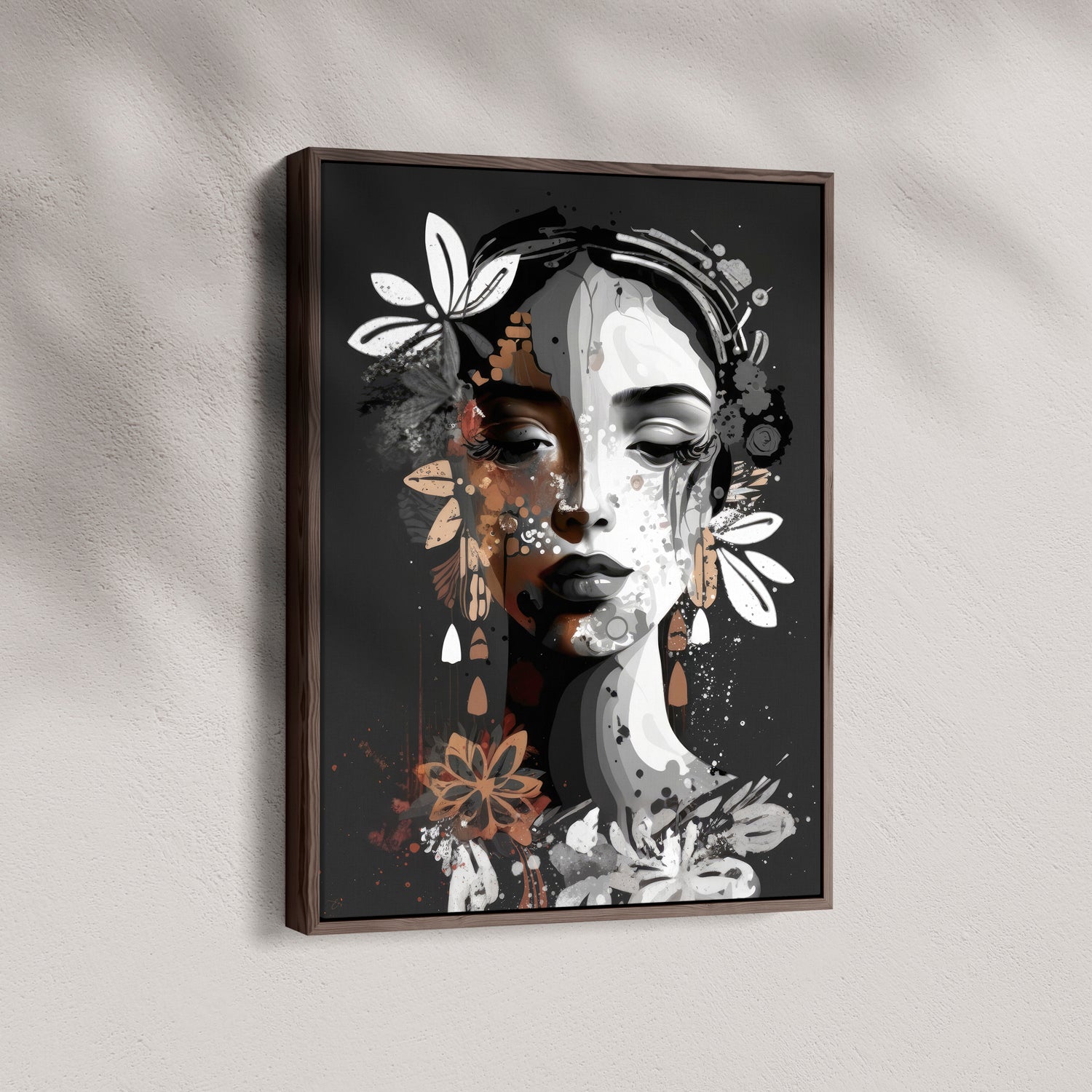 Our stretched canvas is nestled inside a premium hardwood float frame (matte black, white, brown, or natural). A slim front profile and elegant “floating” gap create the illusion that your artwork is levitating inside the frame, adding polish and presence in one ready-to-hang package. This option arrives with pre-installed hardware and rubber bumpers, so all you need is a hook on the wall and a moment to step back and admire.