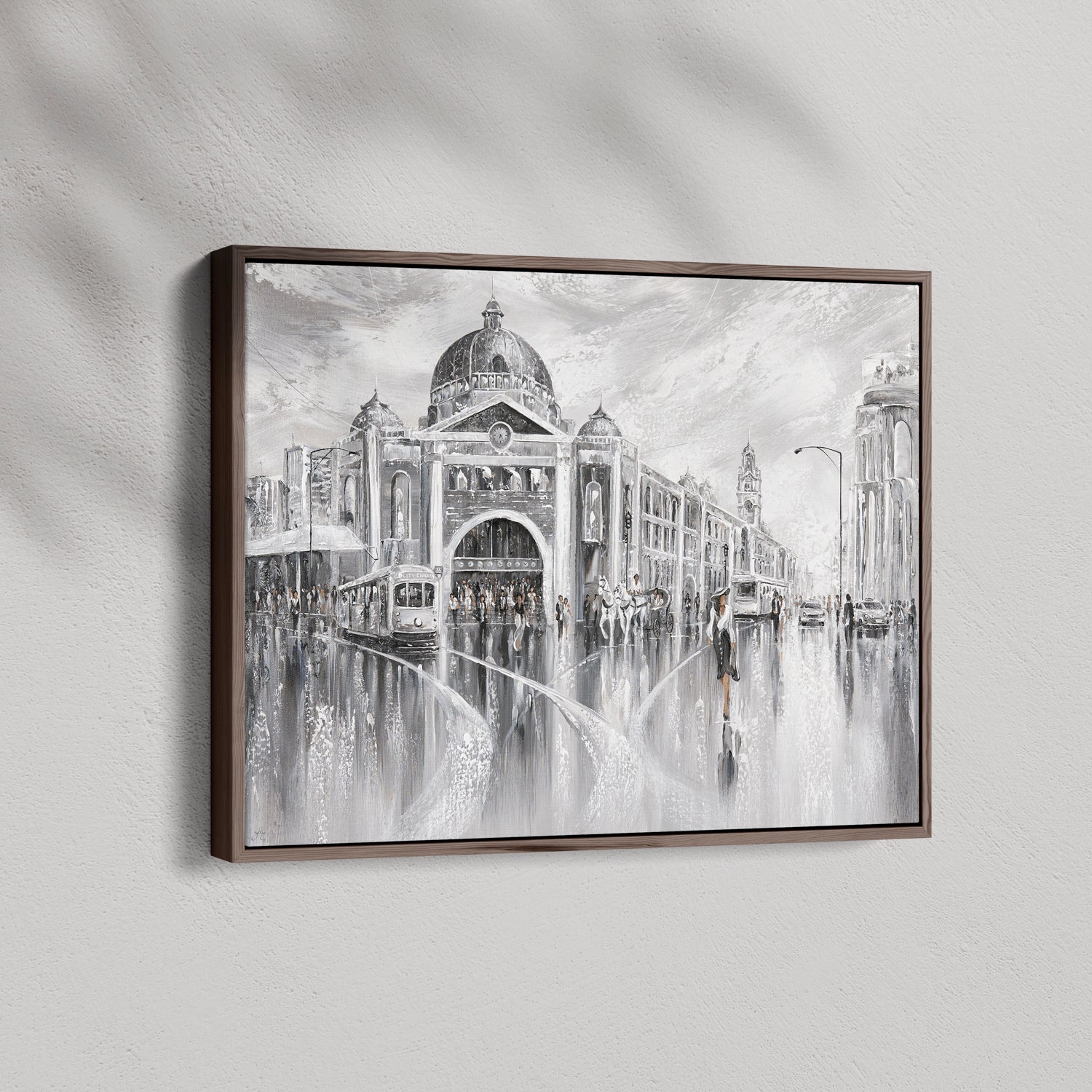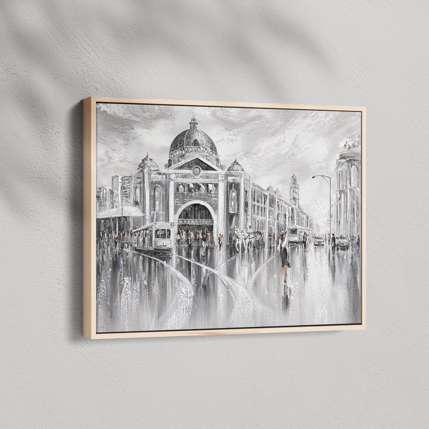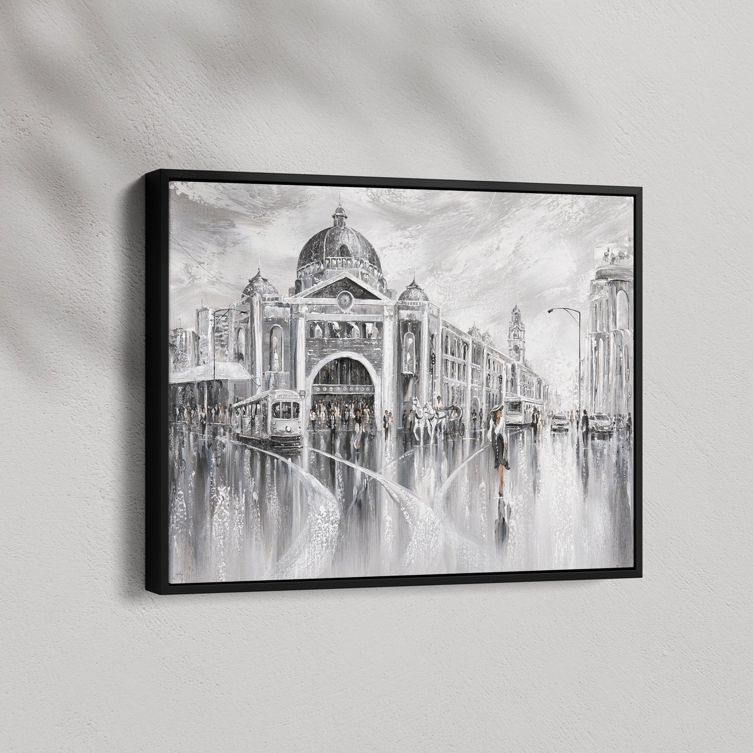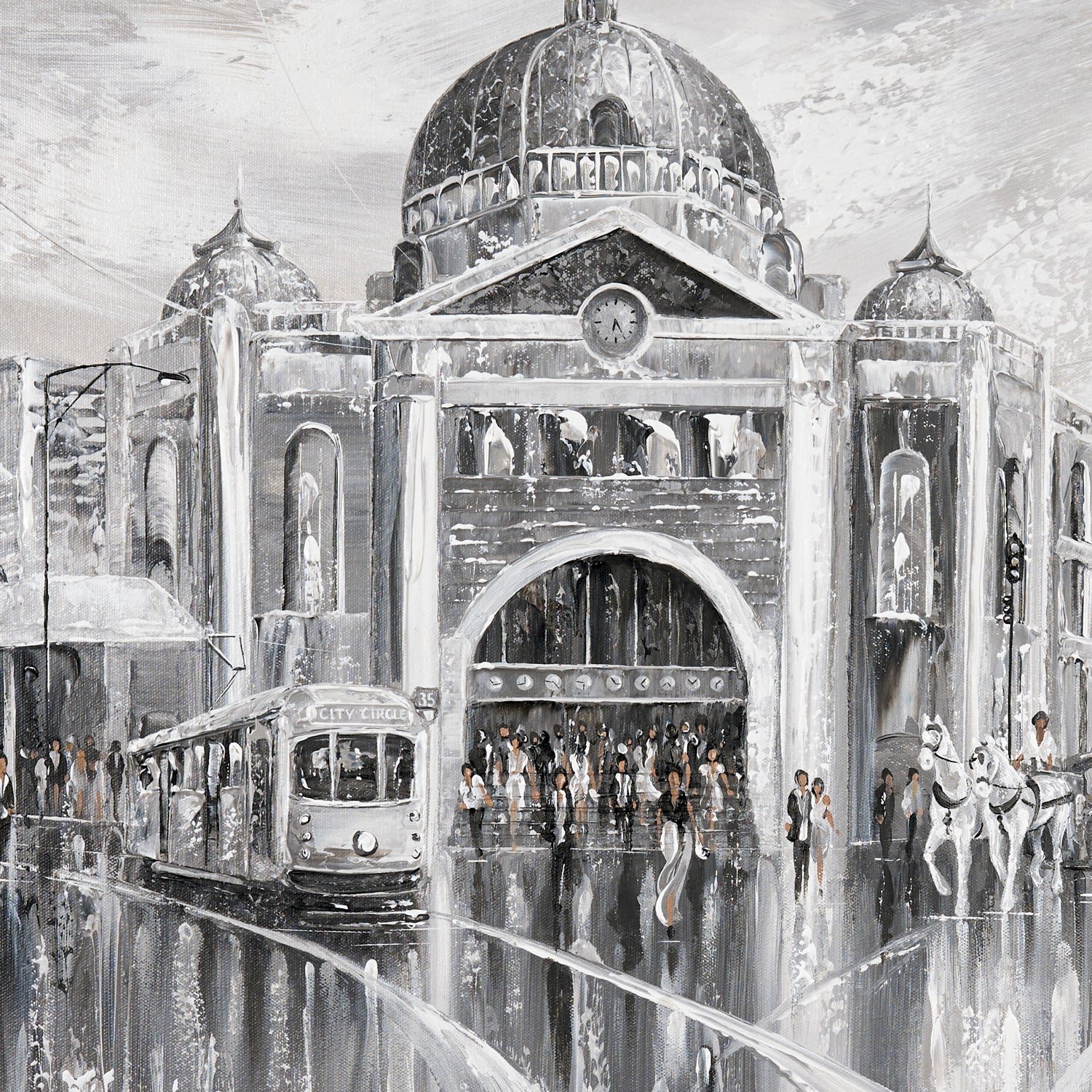 Timeless and cinematic, this piece captures Melbourne’s iconic Flinders Street in shades of elegance. The tram hums, footsteps echo, and the city pulses with layered stories. The past and the present merging in a beautiful reflection.