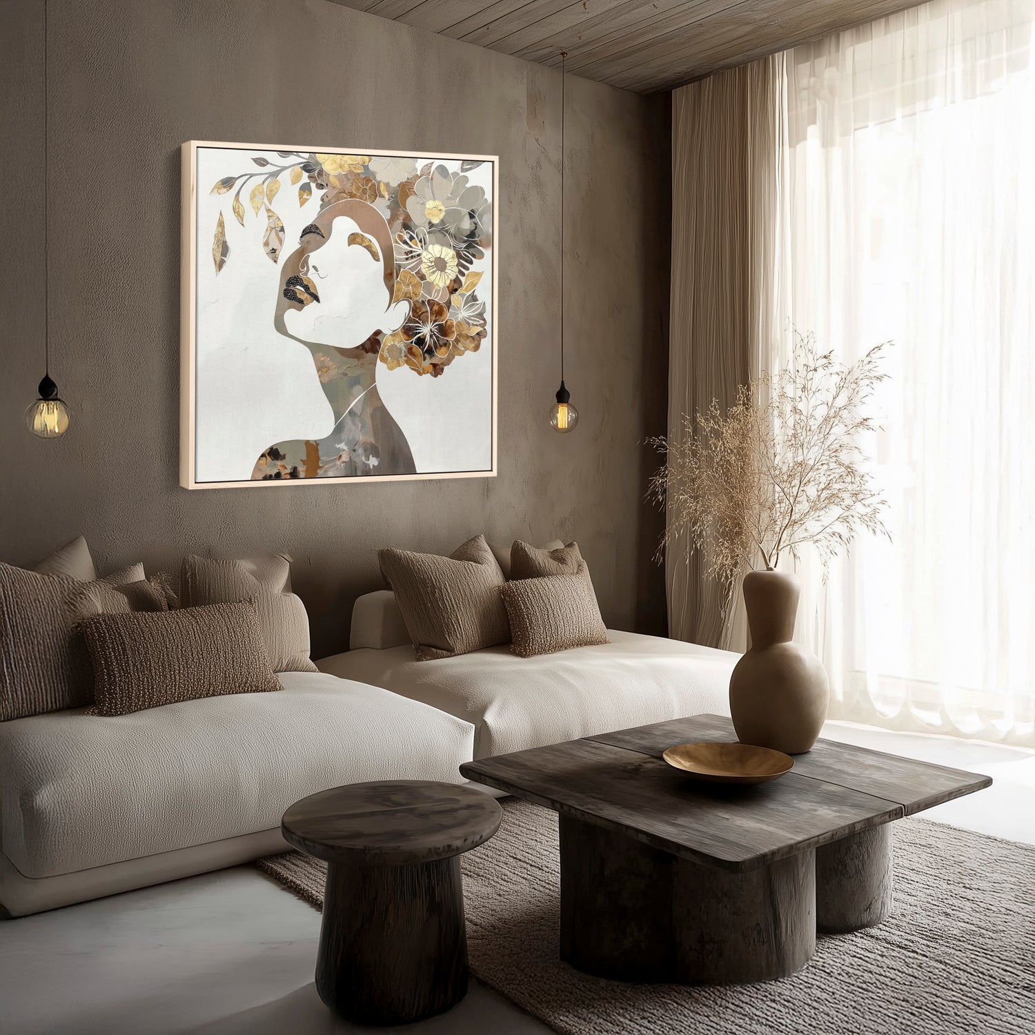 Our stretched canvas is nestled inside a premium hardwood float frame (matte black, white, brown, or natural). A slim front profile and elegant “floating” gap create the illusion that your artwork is levitating inside the frame, adding polish and presence in one ready-to-hang package. This option arrives with pre-installed hardware and rubber bumpers, so all you need is a hook on the wall and a moment to step back and admire.