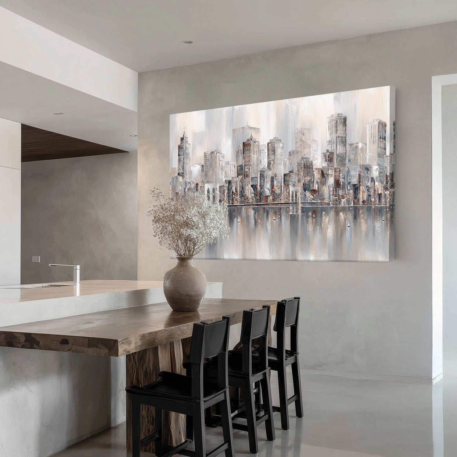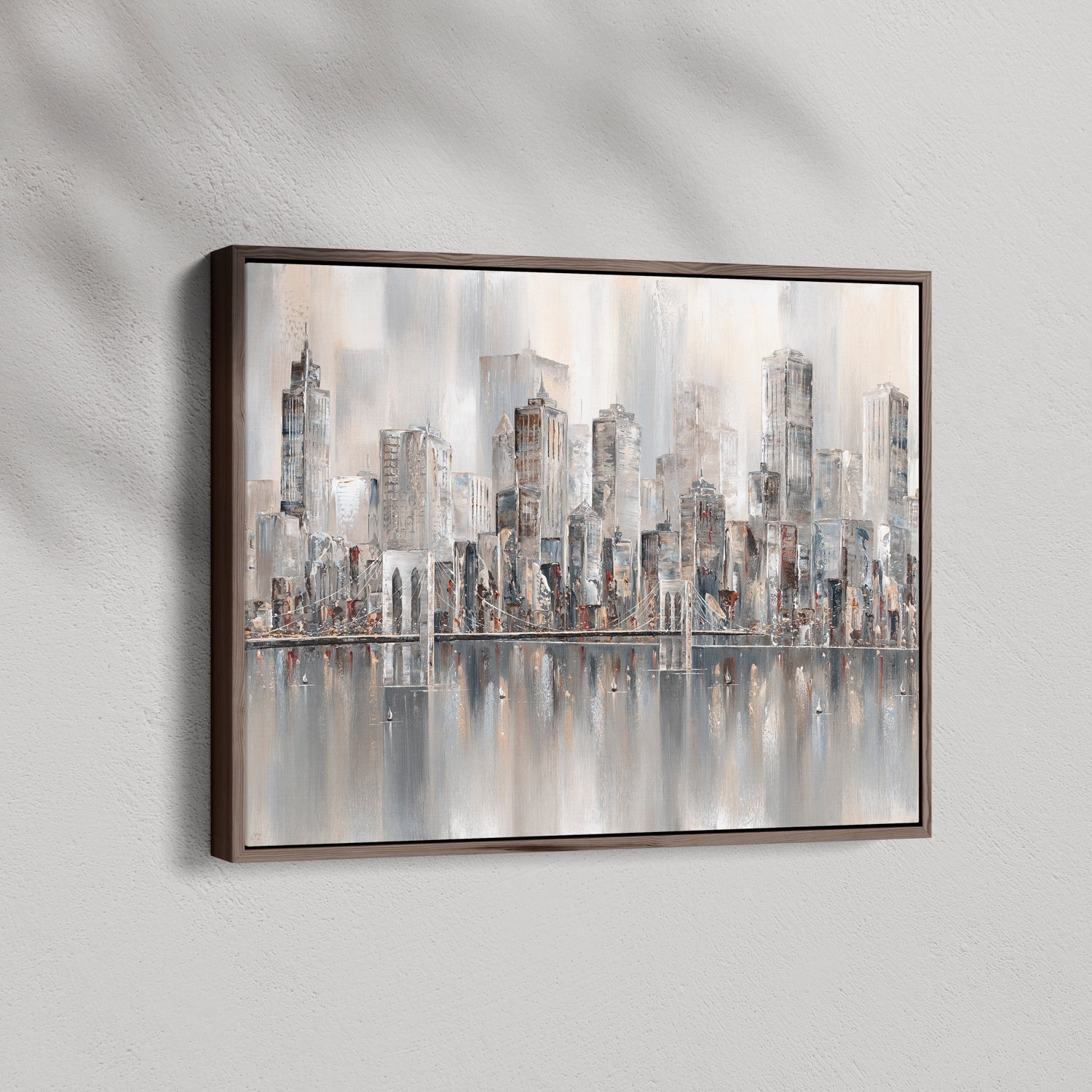 For anyone who's ever stood by the water, taking in the skyline with awe.. this piece brings that moment home. The shimmer of the buildings, the stillness of the river, the quiet hum of the city beneath it all. It’s a memory of New York, not just how it looks, but how it feels. A tribute to the energy, illusion, and magnetism of New York.