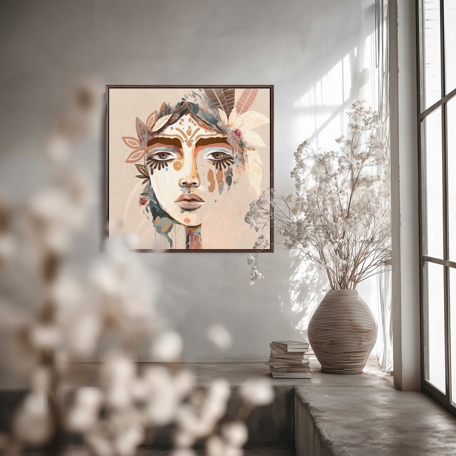 Ivy is bold and untamed. Her gaze echoes ancient wisdom, adorned with tribal markings and symbolic motifs that speak of heritage and feminine strength. Earthy tones and organic textures flow like wild roots, merging tradition with modern expression.