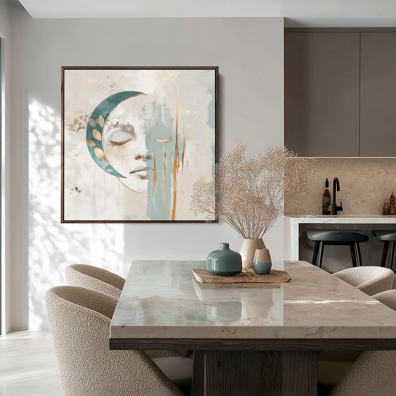 She is calm, infinite, and quietly powerful, a muse of moonlight. A luminous piece for interiors seeking serenity with a touch of celestial beauty.