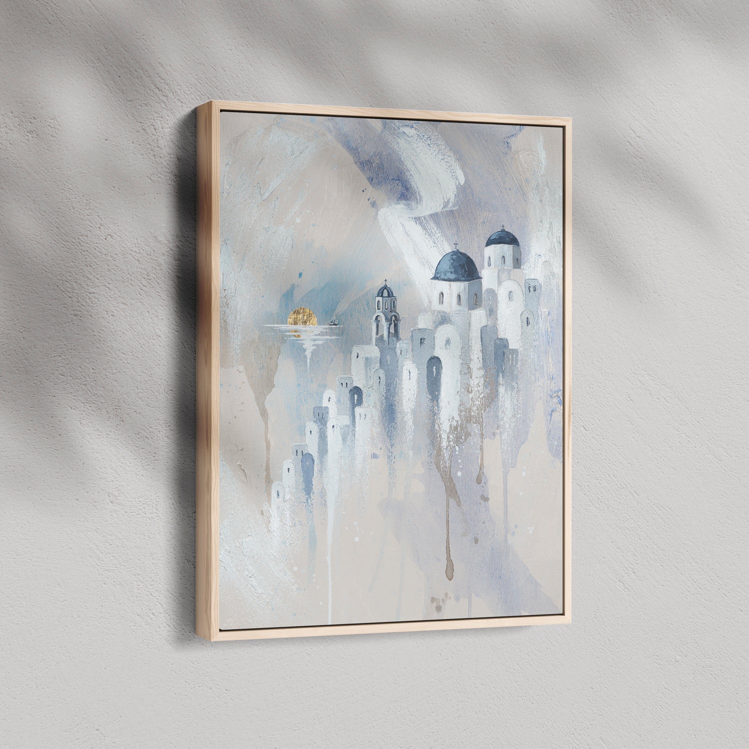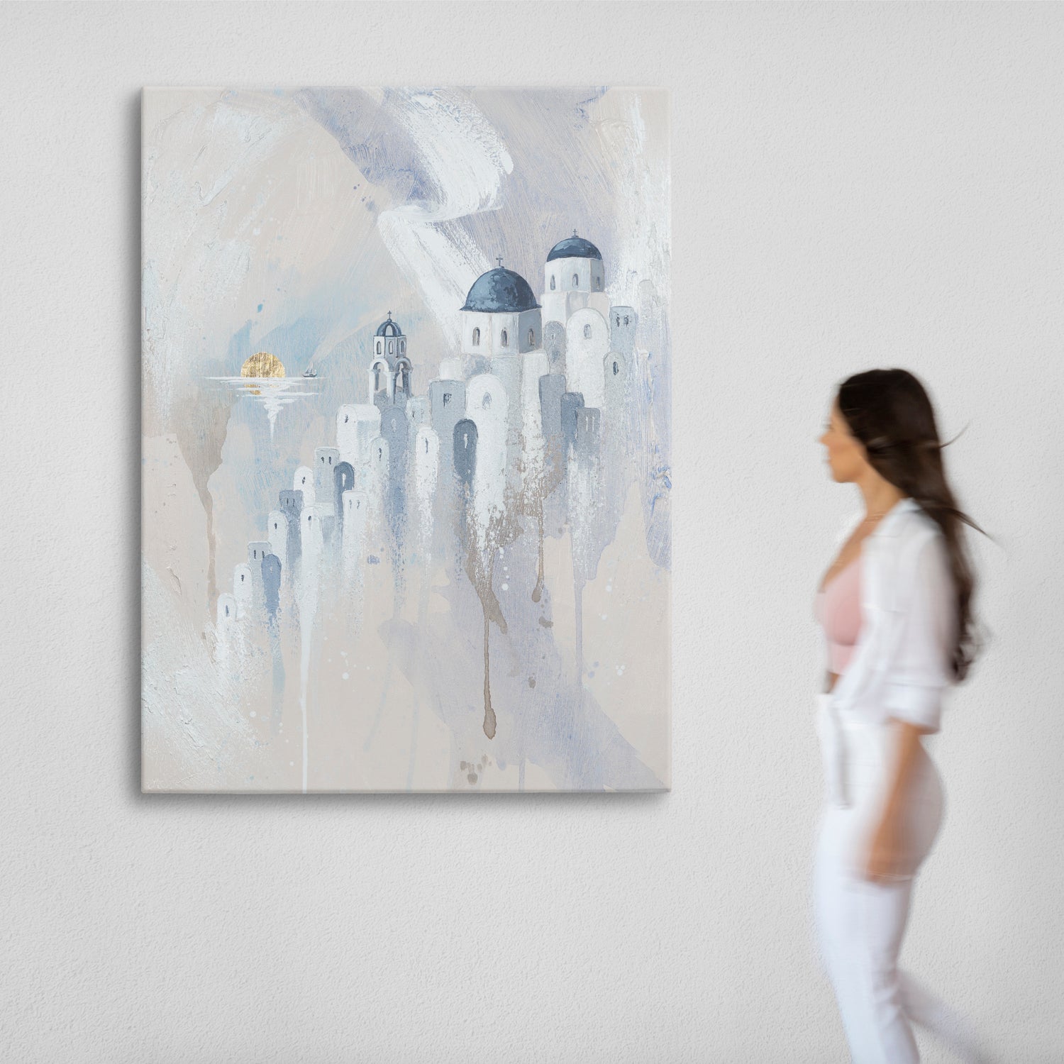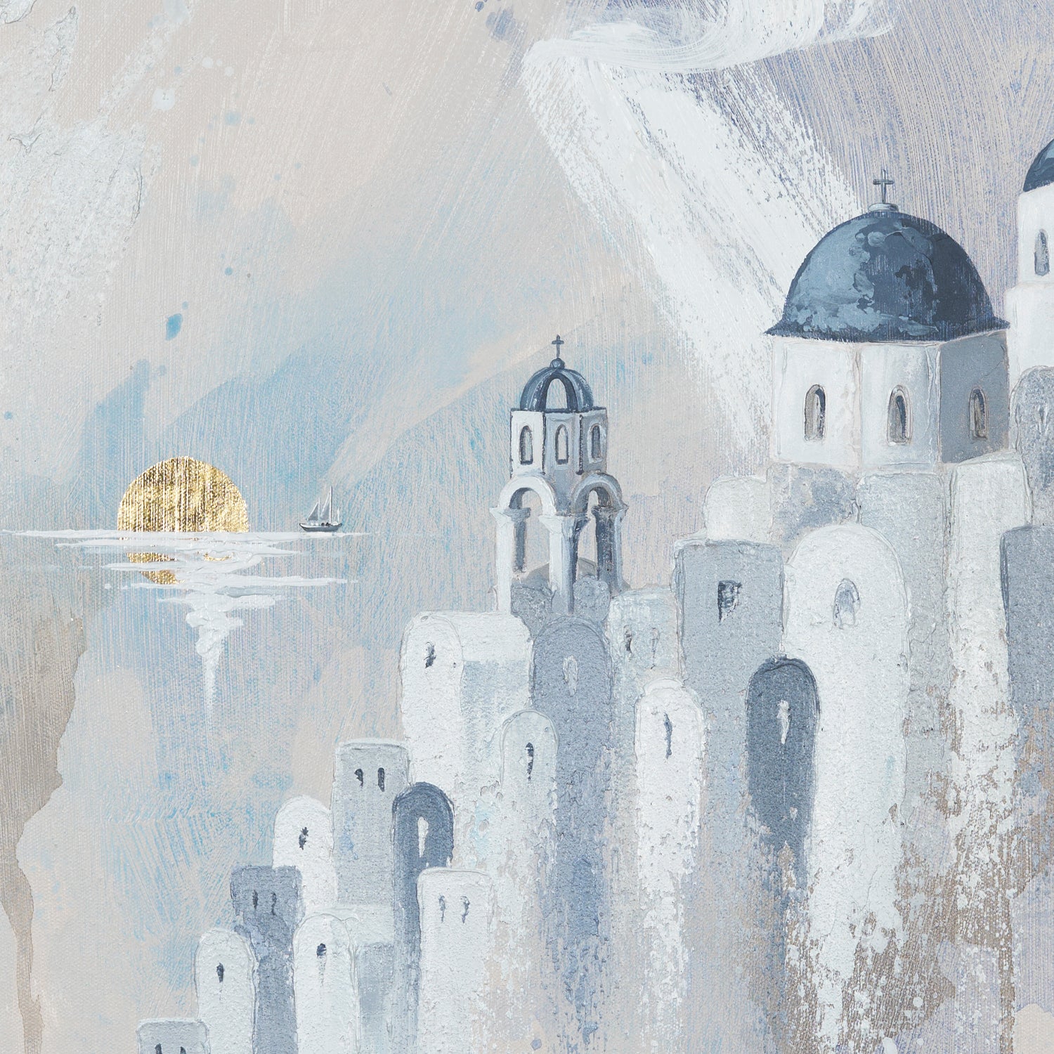 There’s a moment in Santorini where the sun melts into the sea and time seems to slow.. this painting captures that pause. The quiet domes, the soft light, the calm of the Aegean.. if you’ve ever stood there, heart full, not wanting the day to end, this is that feeling preserved in brushstrokes.