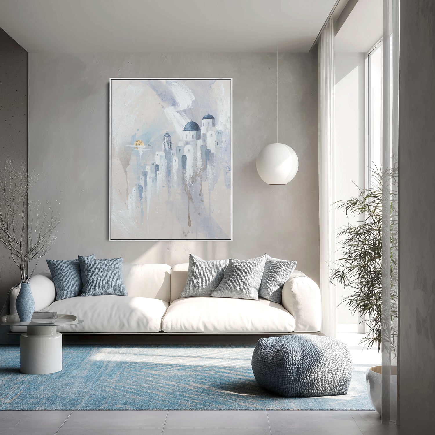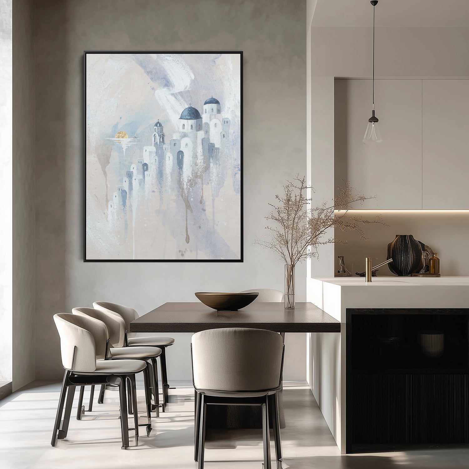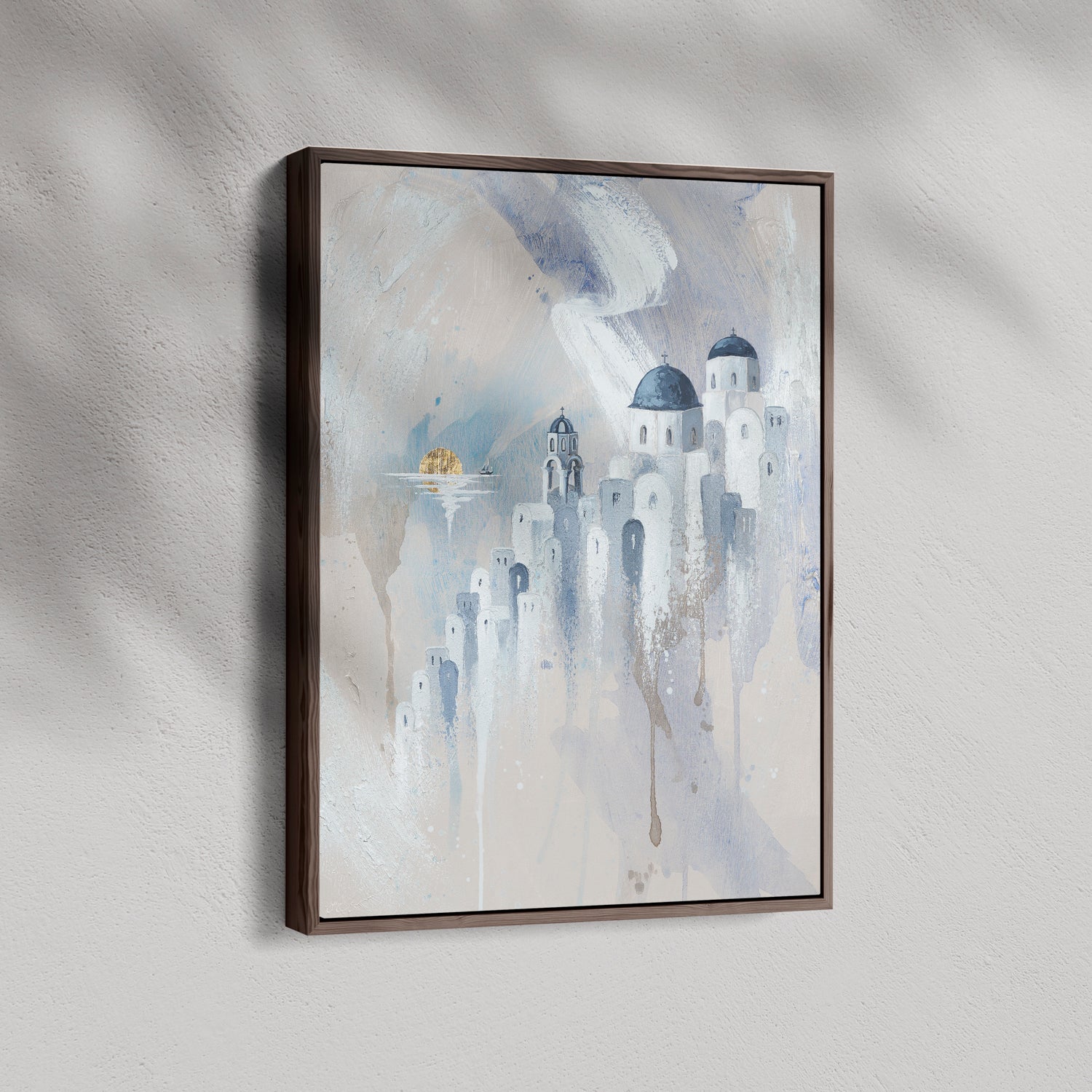 There’s a moment in Santorini where the sun melts into the sea and time seems to slow.. this painting captures that pause. The quiet domes, the soft light, the calm of the Aegean.. if you’ve ever stood there, heart full, not wanting the day to end, this is that feeling preserved in brushstrokes.
