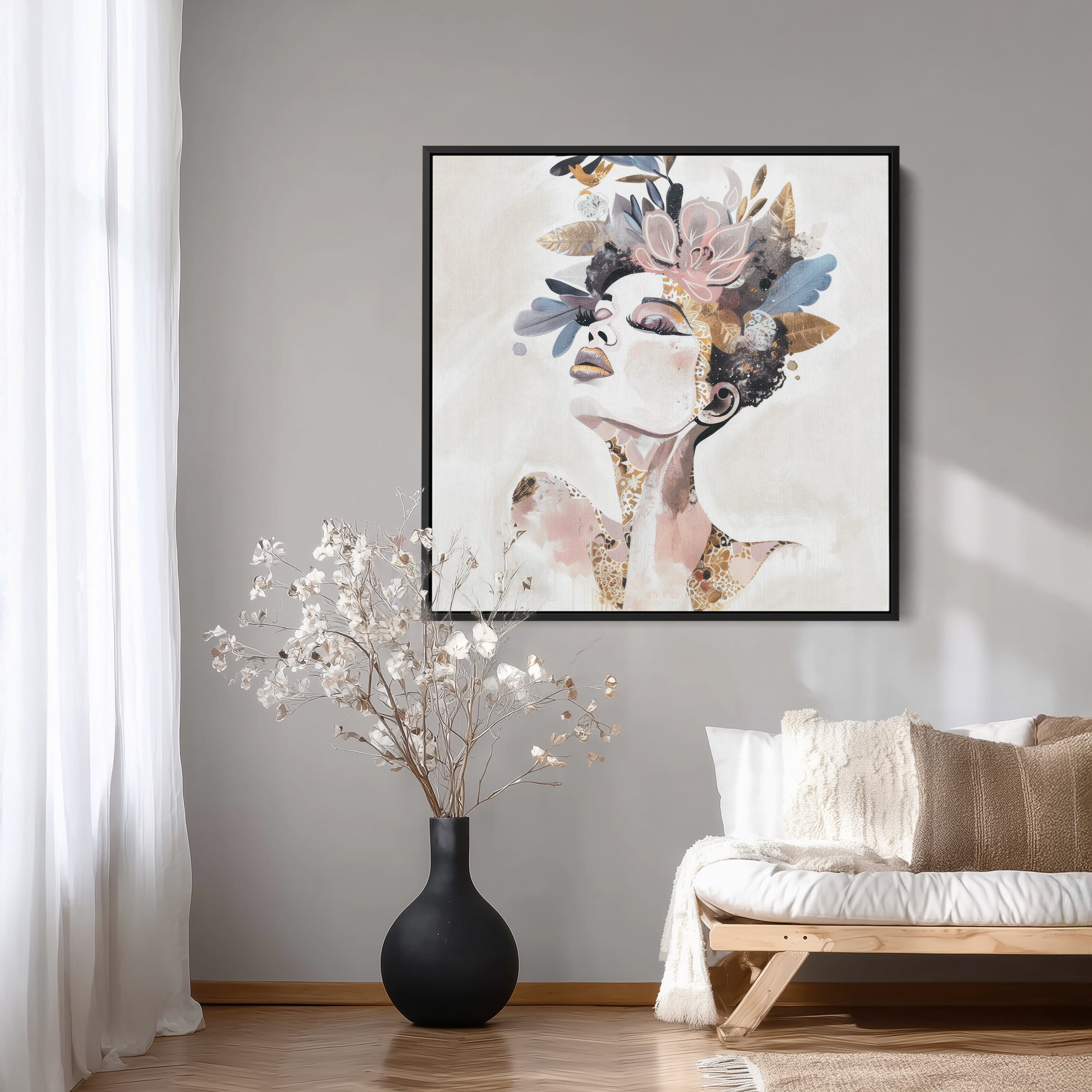 Our stretched canvas is nestled inside a premium hardwood float frame (matte black, white, brown, or natural). A slim front profile and elegant “floating” gap create the illusion that your artwork is levitating inside the frame, adding polish and presence in one ready-to-hang package. This option arrives with pre-installed hardware and rubber bumpers, so all you need is a hook on the wall and a moment to step back and admire.