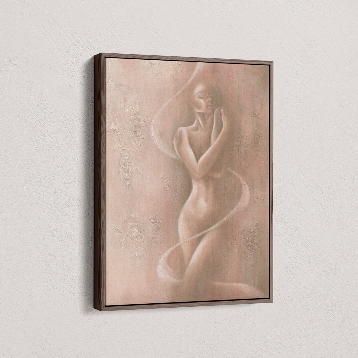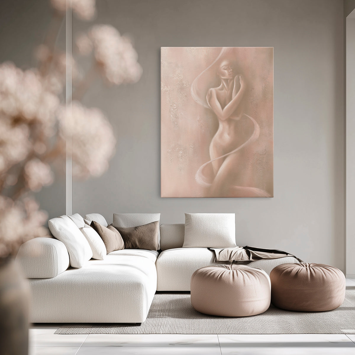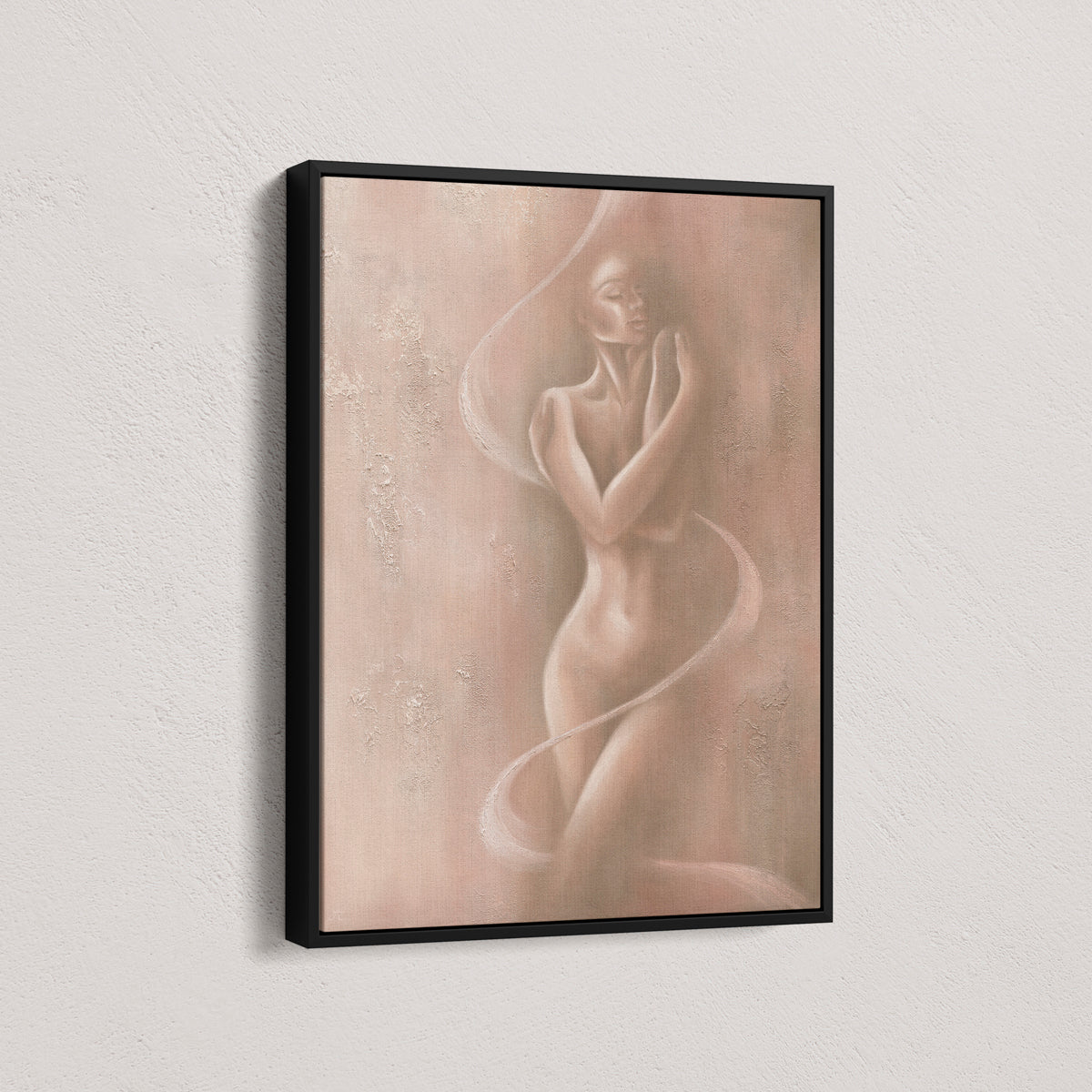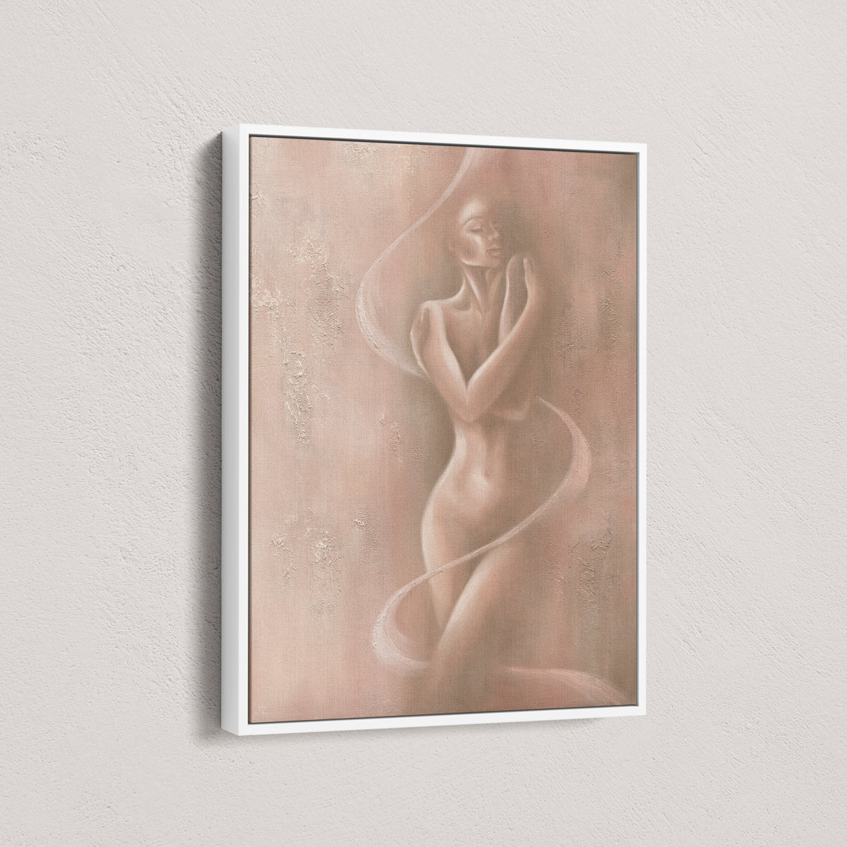 Self Love is a tender portrayal of a woman embracing herself, enveloped in a soft, pink glow that radiates warmth and affection. The artwork invites viewers to reflect on the importance of nurturing love for oneself, capturing the serene and powerful journey of self-discovery and the embracing of one's own being with kindness and grace.