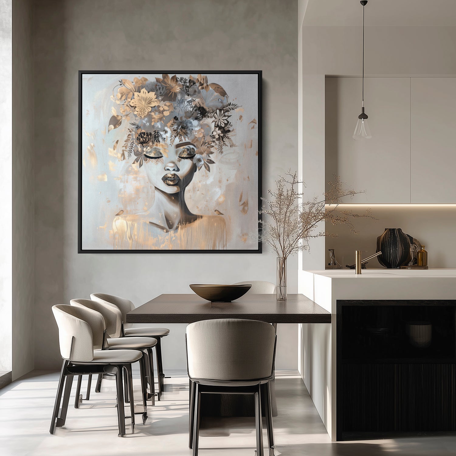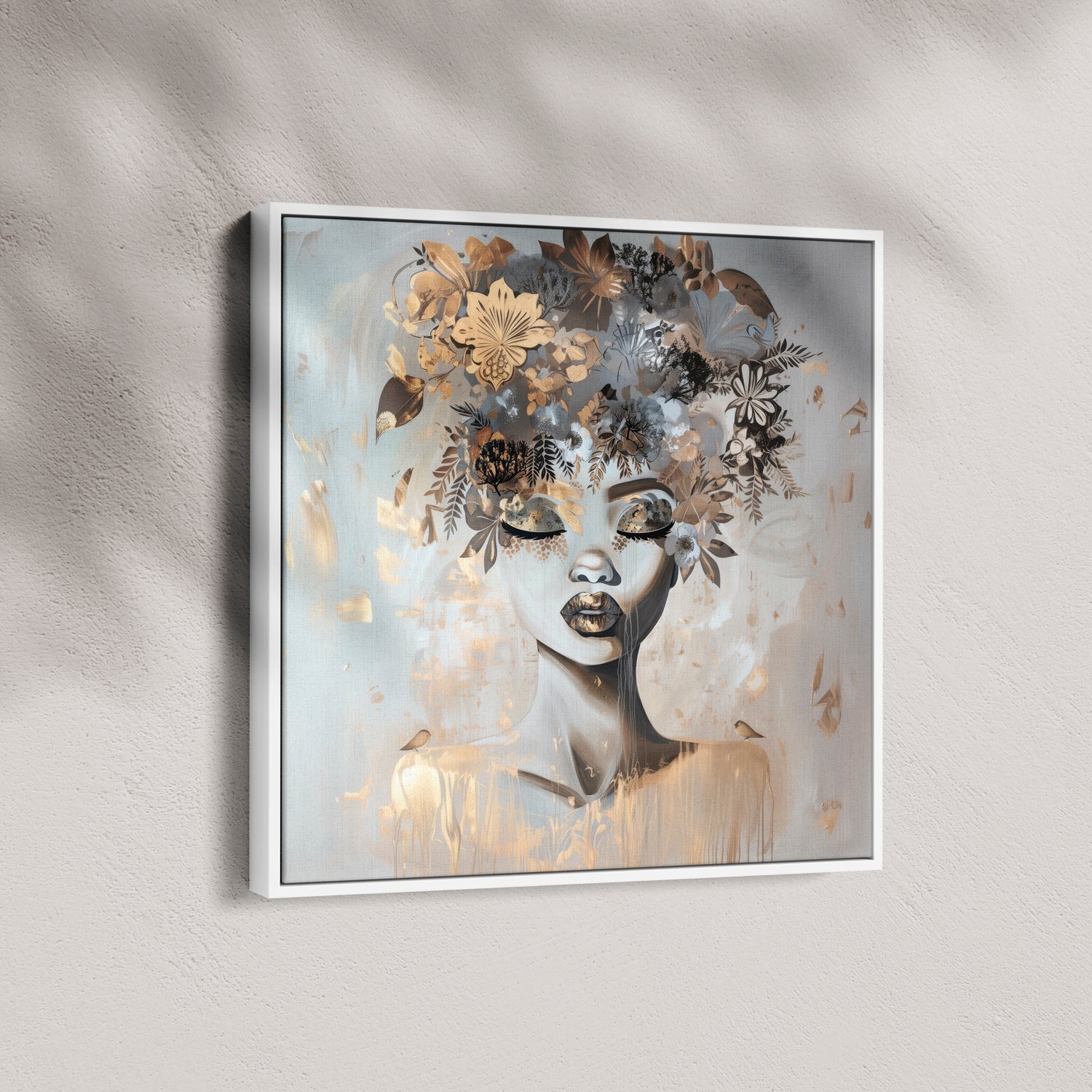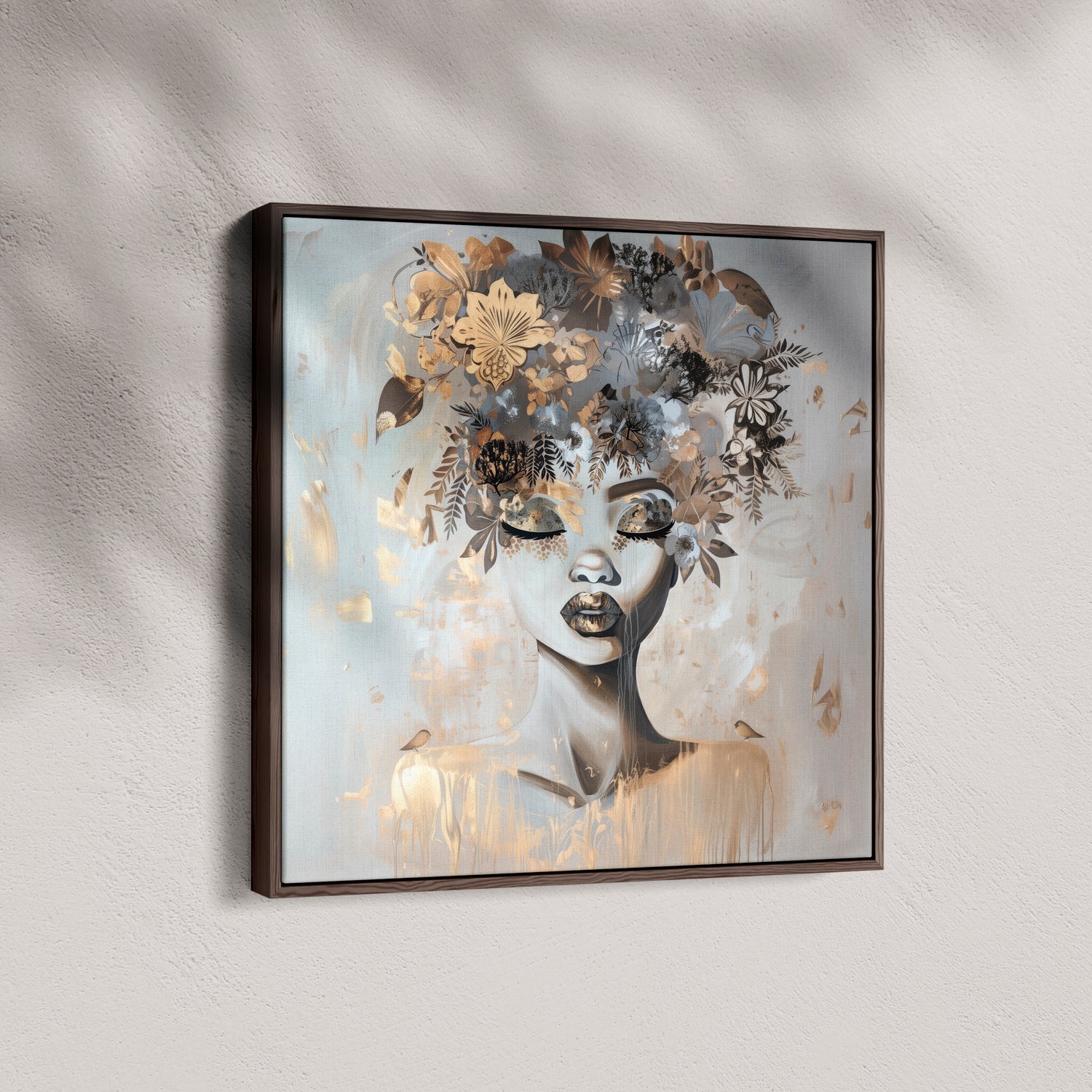 Our stretched canvas is nestled inside a premium hardwood float frame (matte black, white, brown, or natural). A slim front profile and elegant “floating” gap create the illusion that your artwork is levitating inside the frame, adding polish and presence in one ready-to-hang package. This option arrives with pre-installed hardware and rubber bumpers, so all you need is a hook on the wall and a moment to step back and admire.