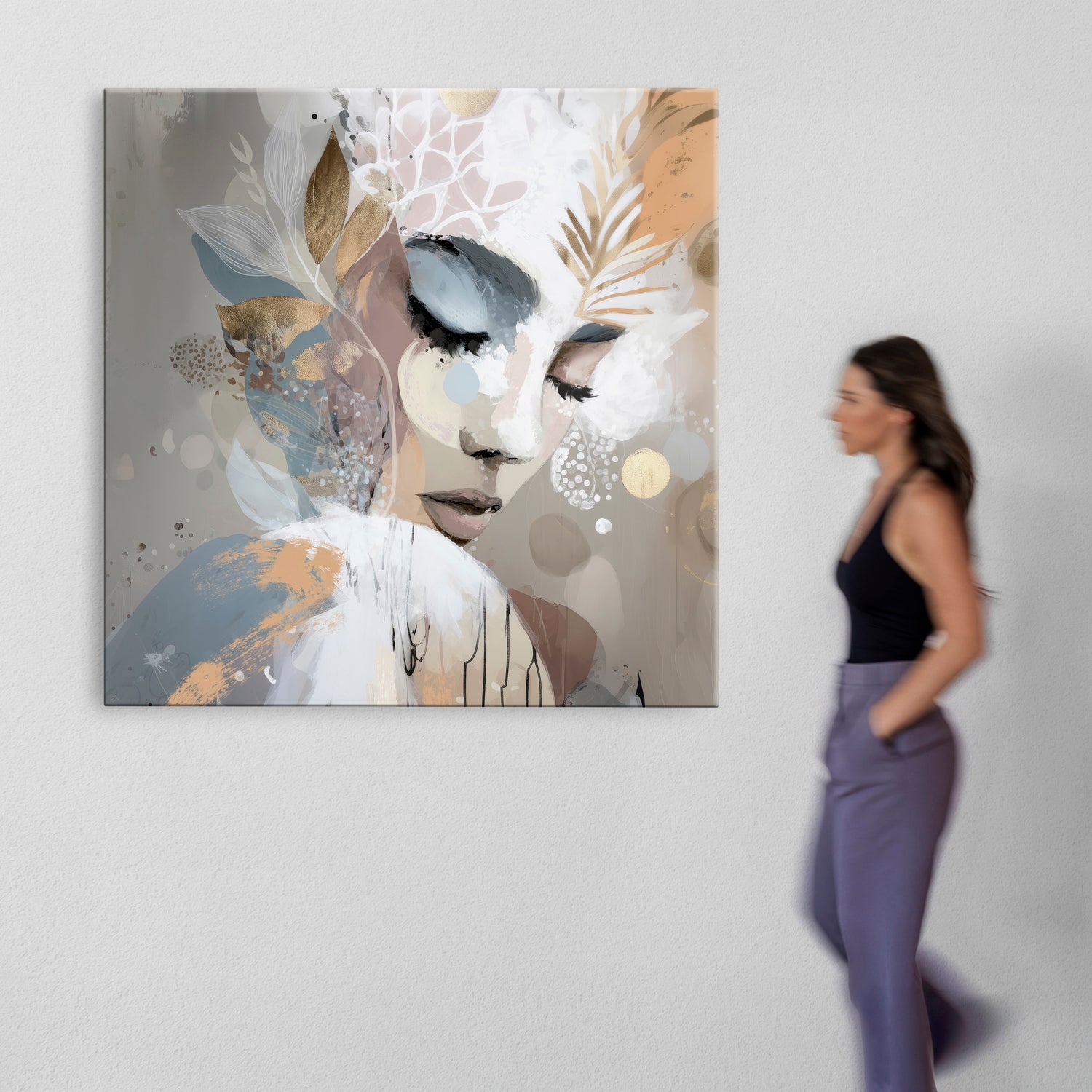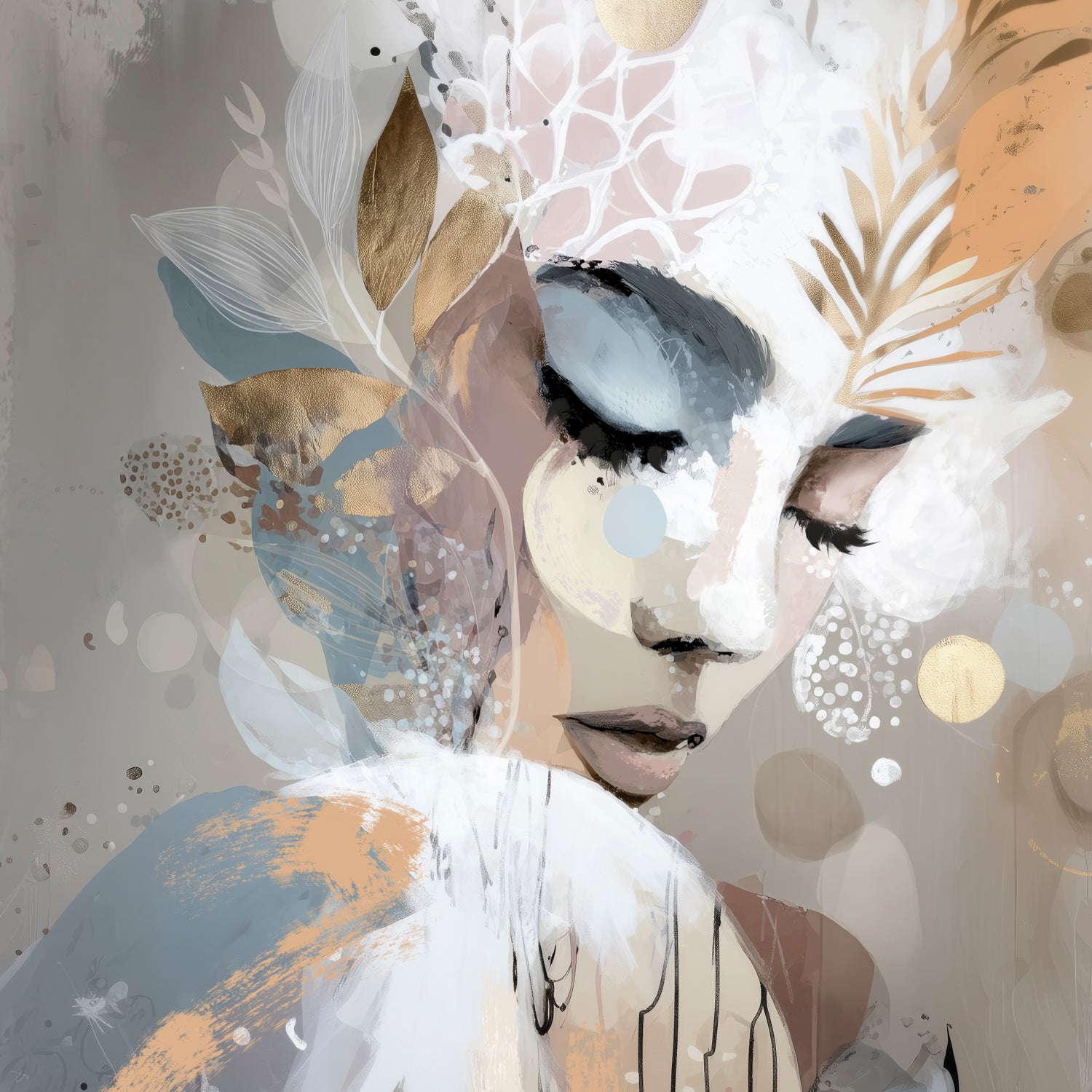 Draped in soft textures and whispering leaves, she embodies the beauty of introspection.