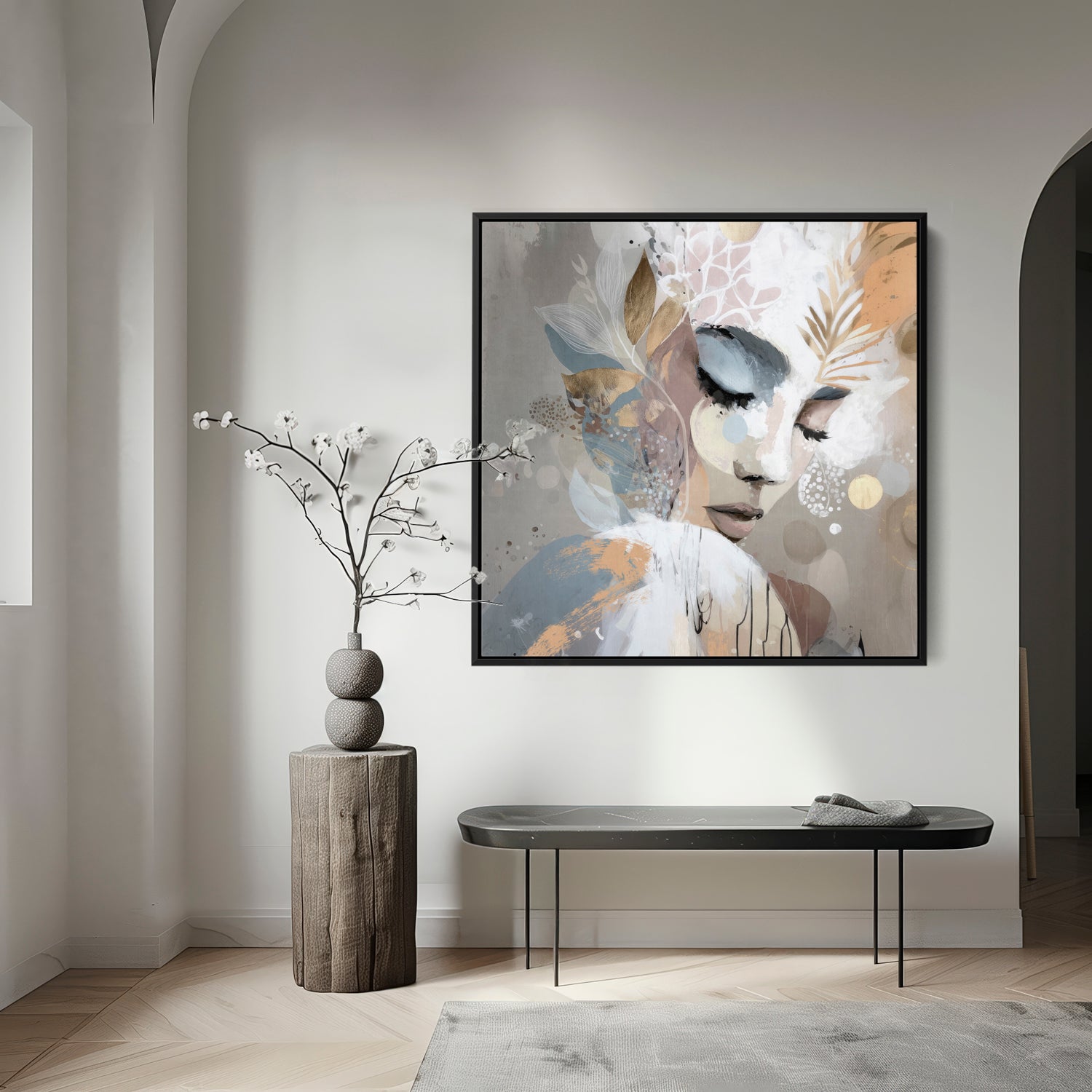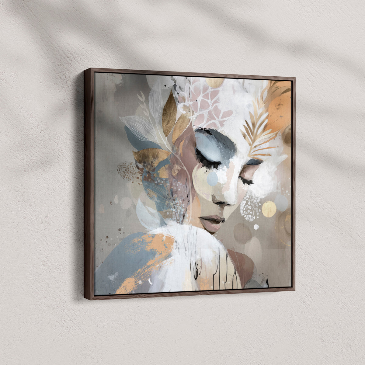Our stretched canvas is nestled inside a premium hardwood float frame (matte black, white, brown, or natural). A slim front profile and elegant “floating” gap create the illusion that your artwork is levitating inside the frame, adding polish and presence in one ready-to-hang package. This option arrives with pre-installed hardware and rubber bumpers, so all you need is a hook on the wall and a moment to step back and admire.