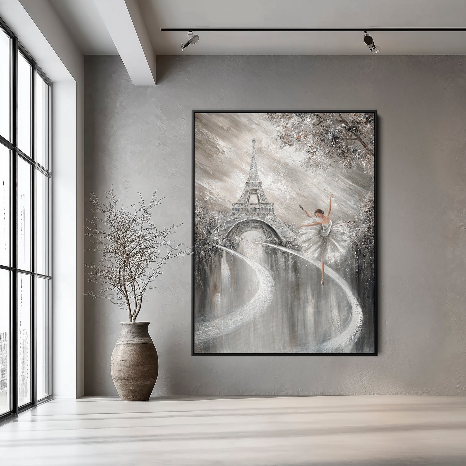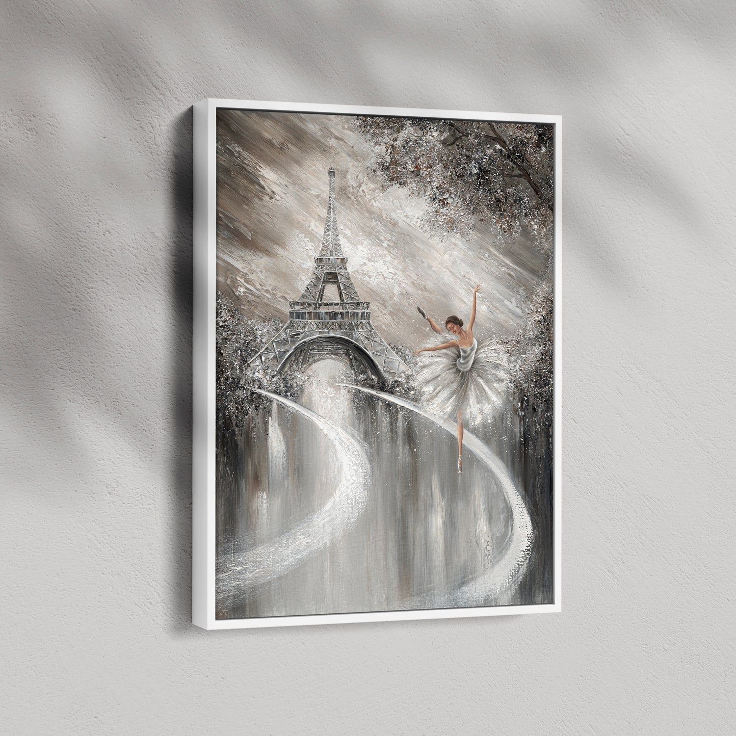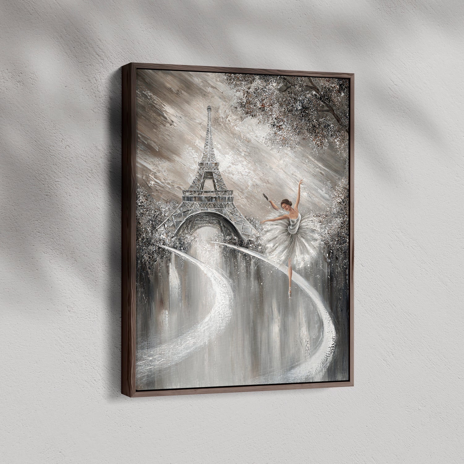 The perfect combination of simplicity, beauty and strength. Tutu Twirl, Paris Flair offers a captivating blend of movement and monumentality, portraying a spirited ballerina spinning in front of the Eiffel Tower. The painting’s warm undertones and monochromatic palette highlight the fluidity and grace of the dancer’s movements, creating a striking focal point for any room.