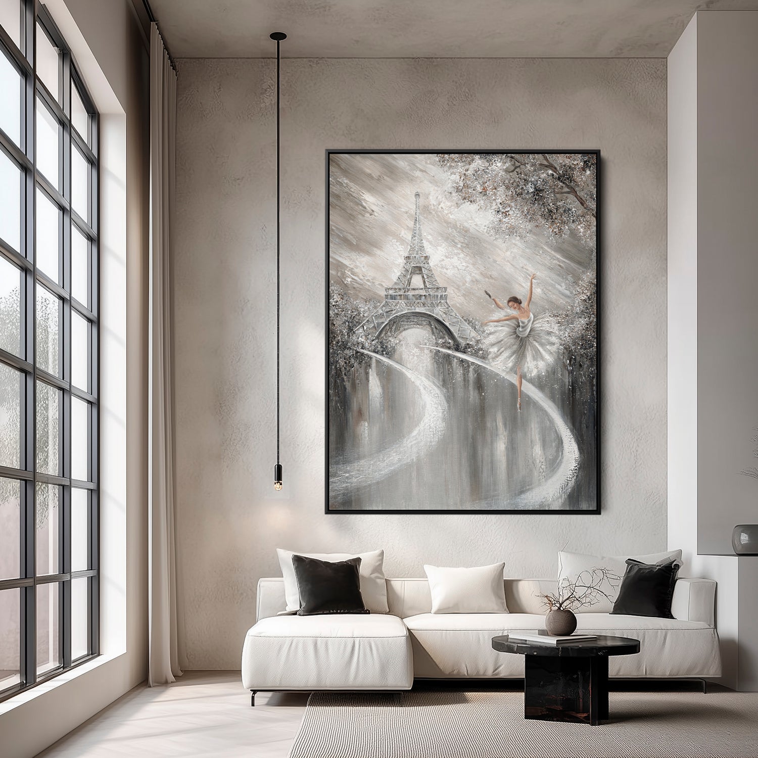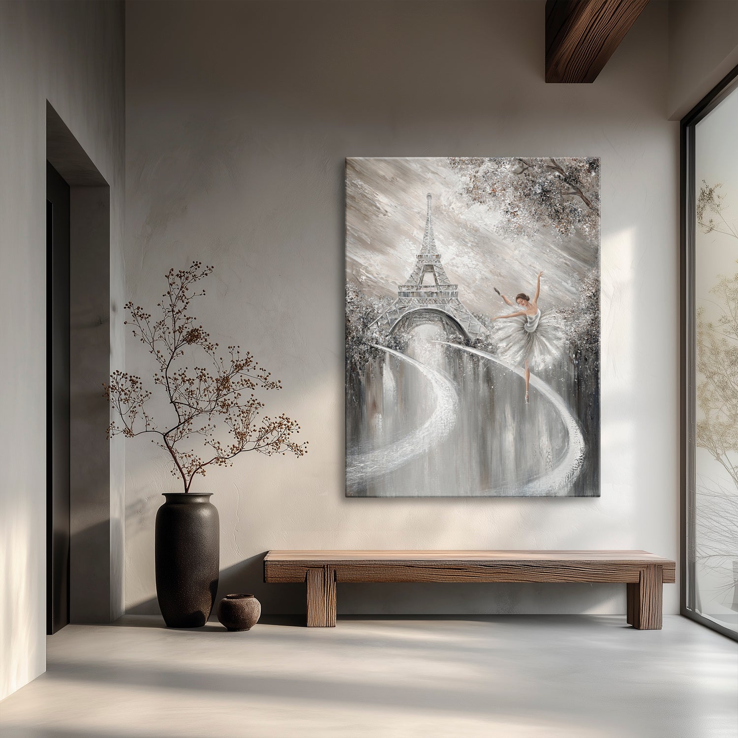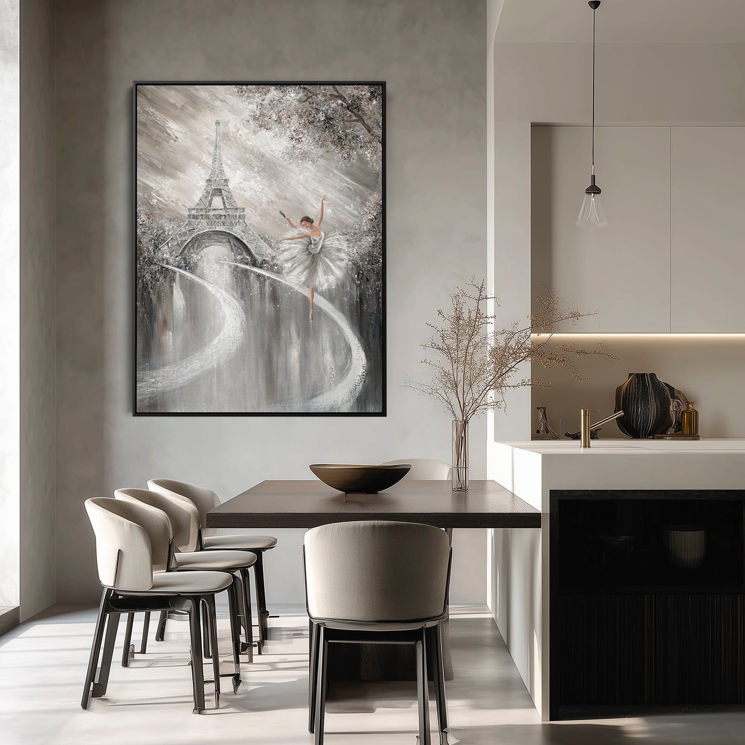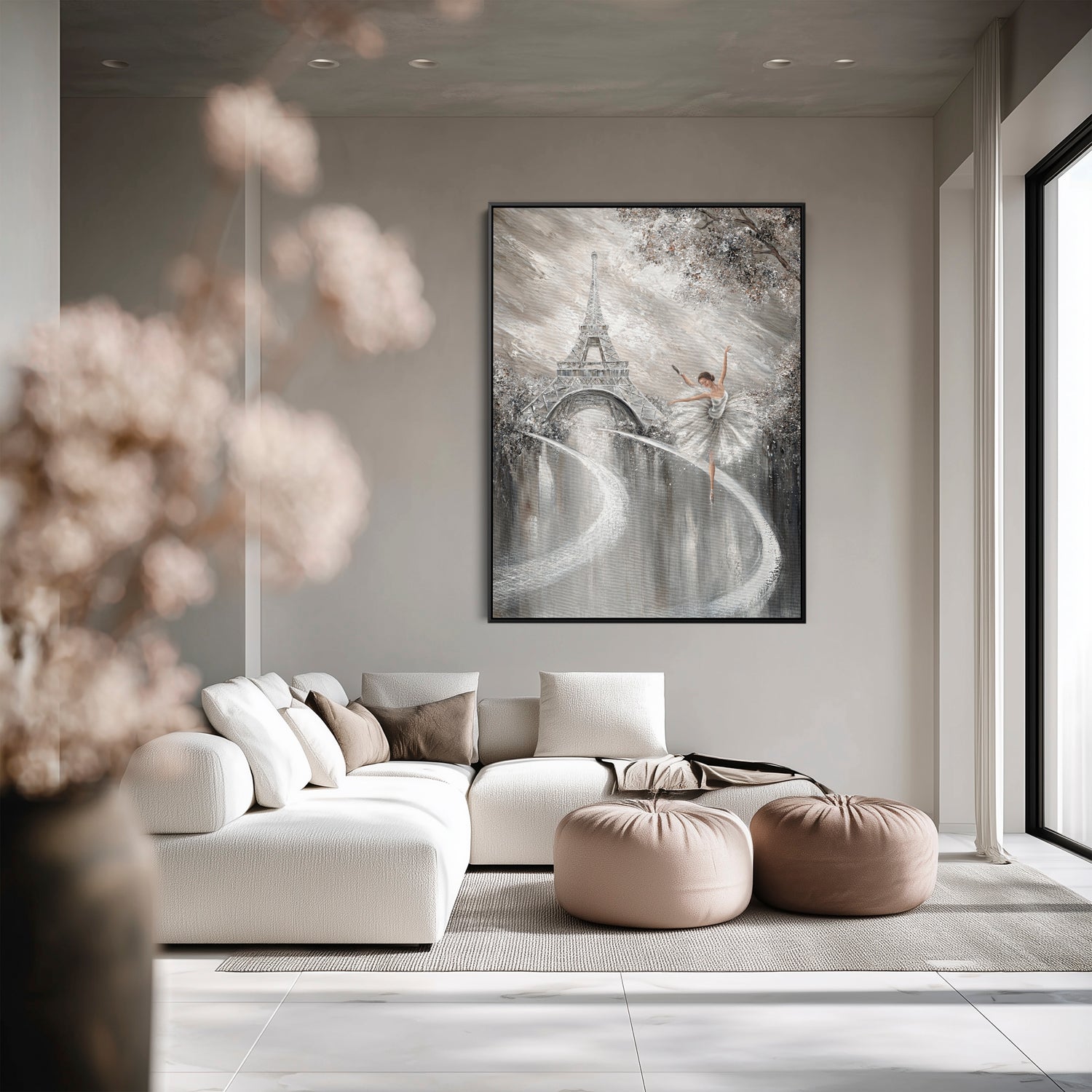 The perfect combination of simplicity, beauty and strength. Tutu Twirl, Paris Flair offers a captivating blend of movement and monumentality, portraying a spirited ballerina spinning in front of the Eiffel Tower. The painting’s warm undertones and monochromatic palette highlight the fluidity and grace of the dancer’s movements, creating a striking focal point for any room.